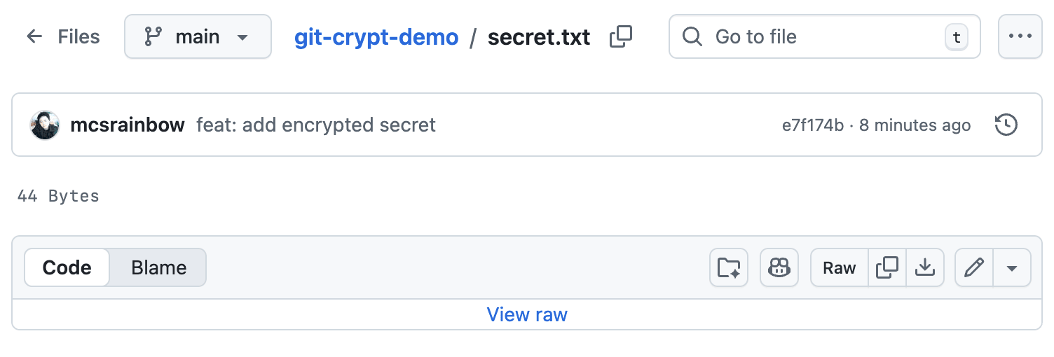 在 GitHub 上查看加密后的 secret.txt 为 View raw